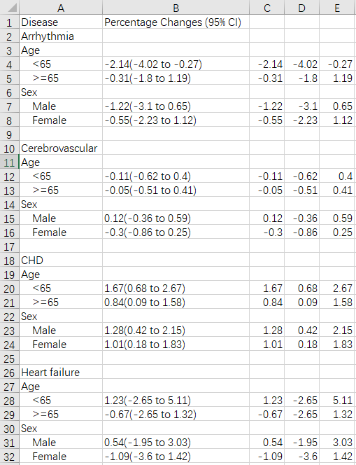 1          Disease Percentage Changes (95% CI)    NA    NA    NA