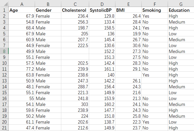 tableone packagelistVars <- c("Age", "Gender", "Cholesterol", "SystolicBP",