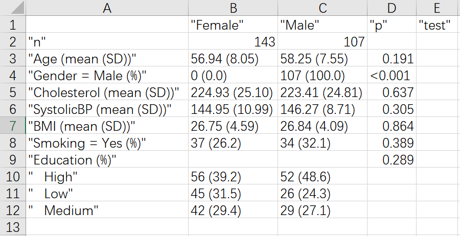 write.csv(sum_tab1_out, 'code/table1/result_arsenal_table1.csv', row.names = F)arsenal packageControl test and summary settings for the tableby() function.