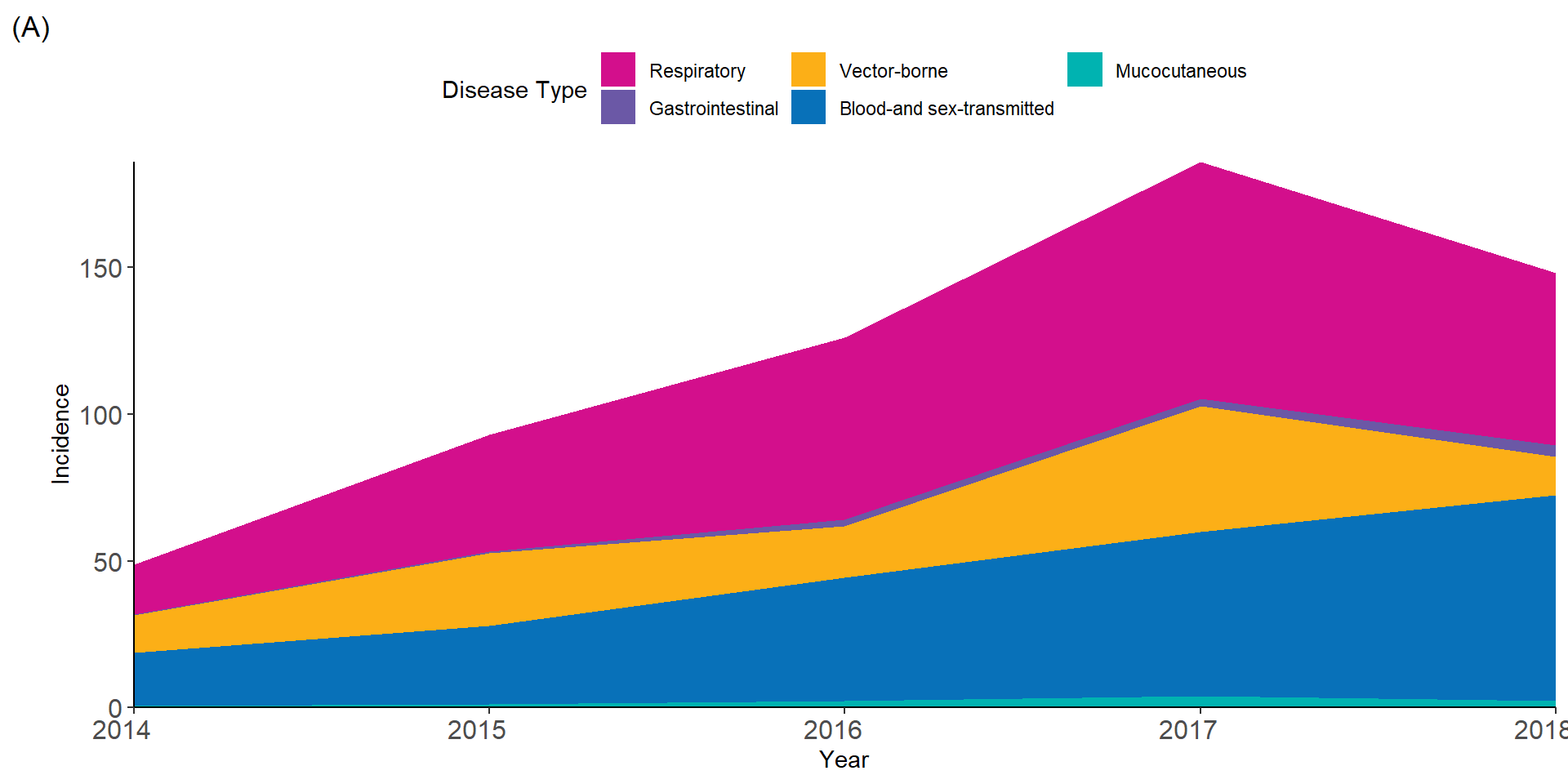facet_wrap(vars(disease_type_en), nrow = 1, ncol = 5)+
