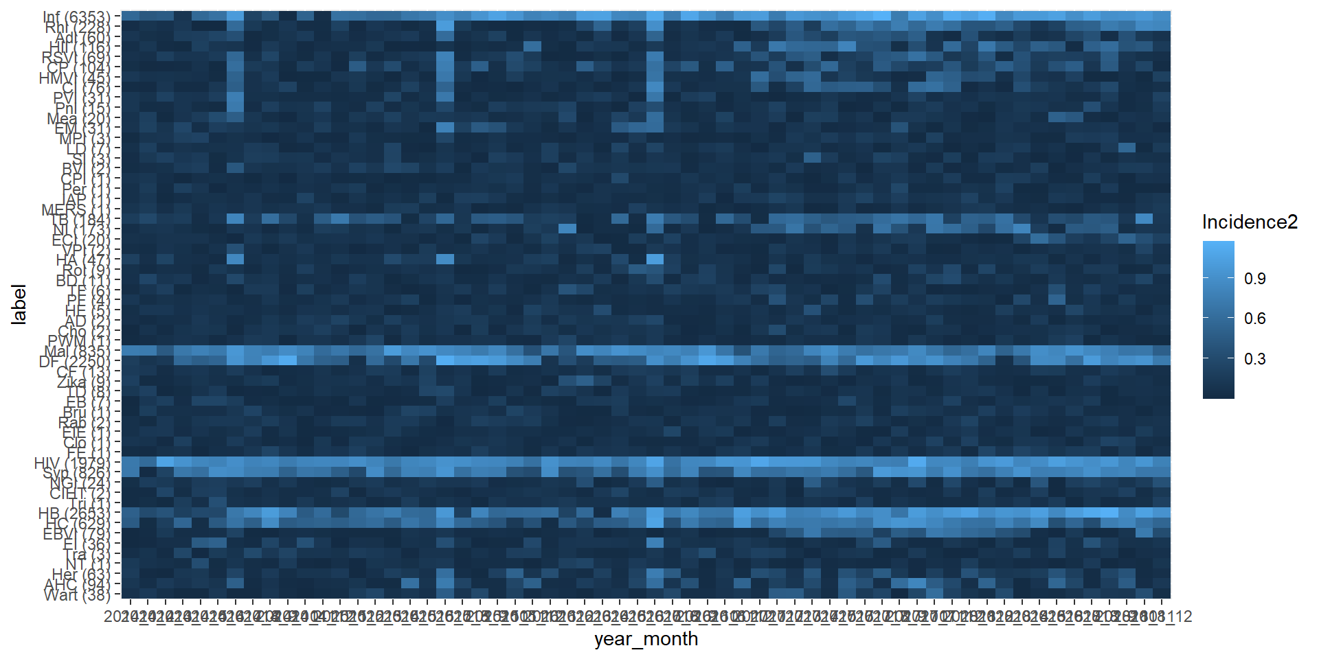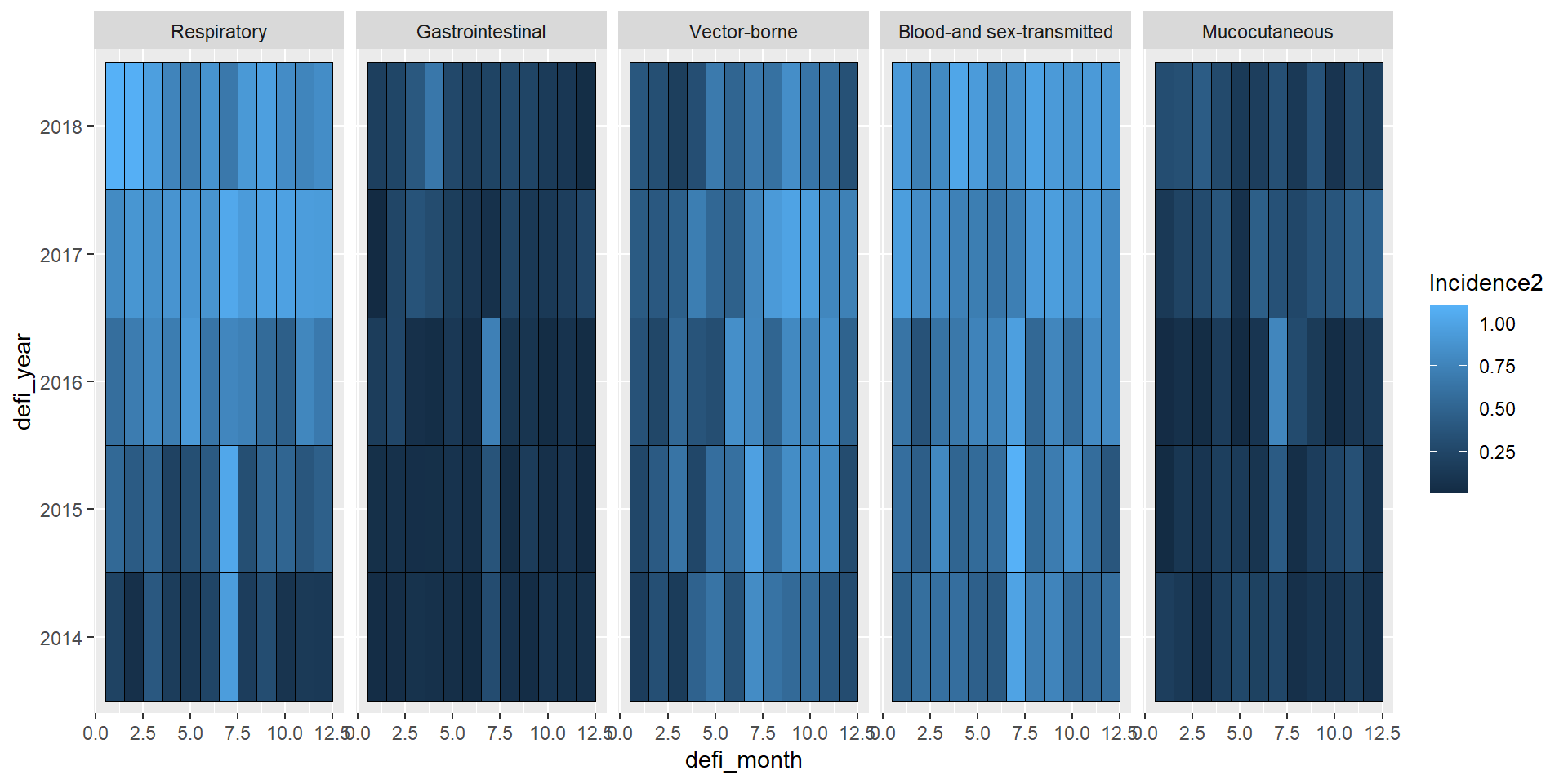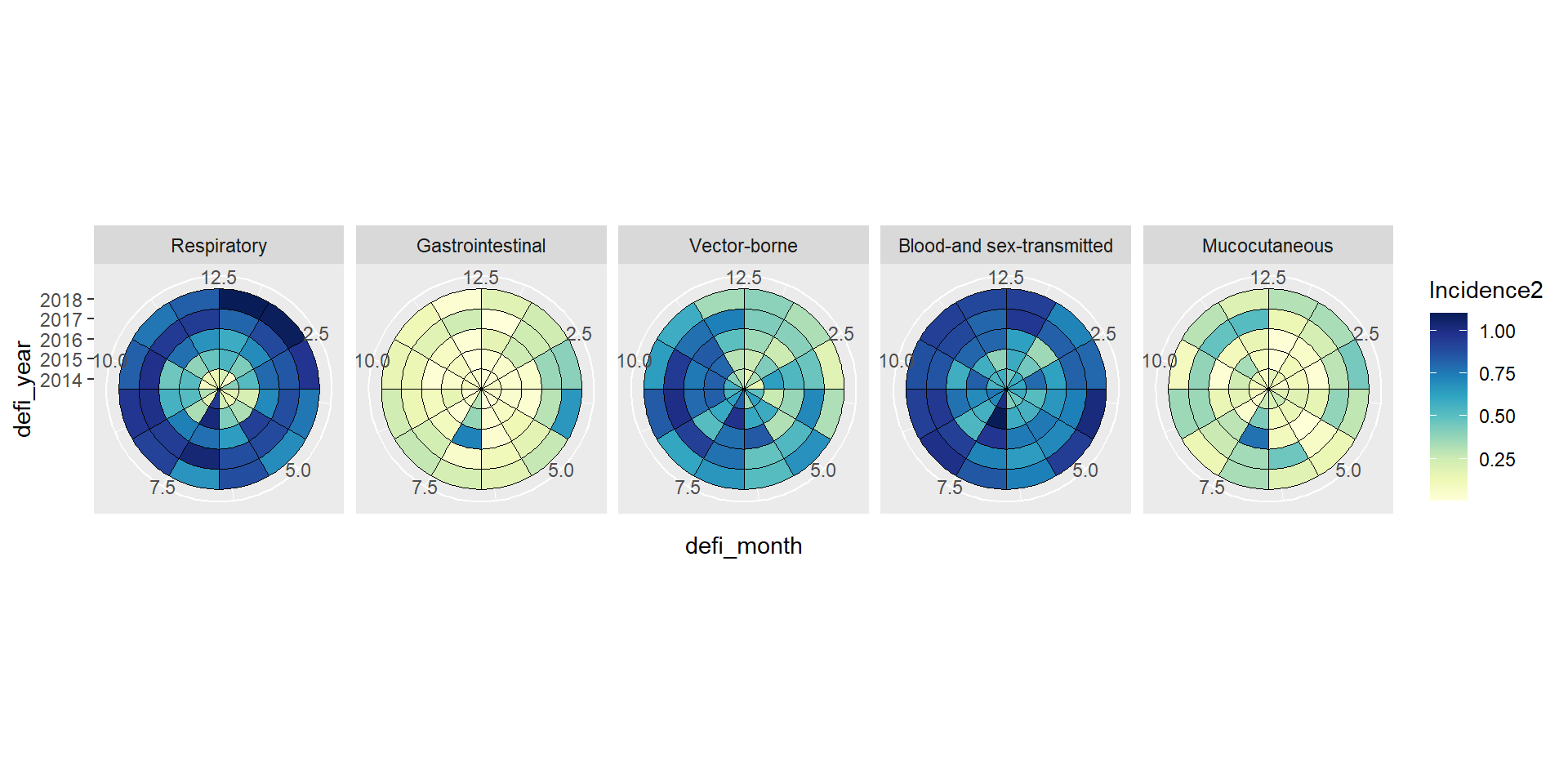 Mapping dataAdd geom_tileFacet plotChange coordinate systemSet colorSet theme(p_C = ggplot(dat3,aes(x = defi_month, y = defi_year, fill = Incidence2)) +